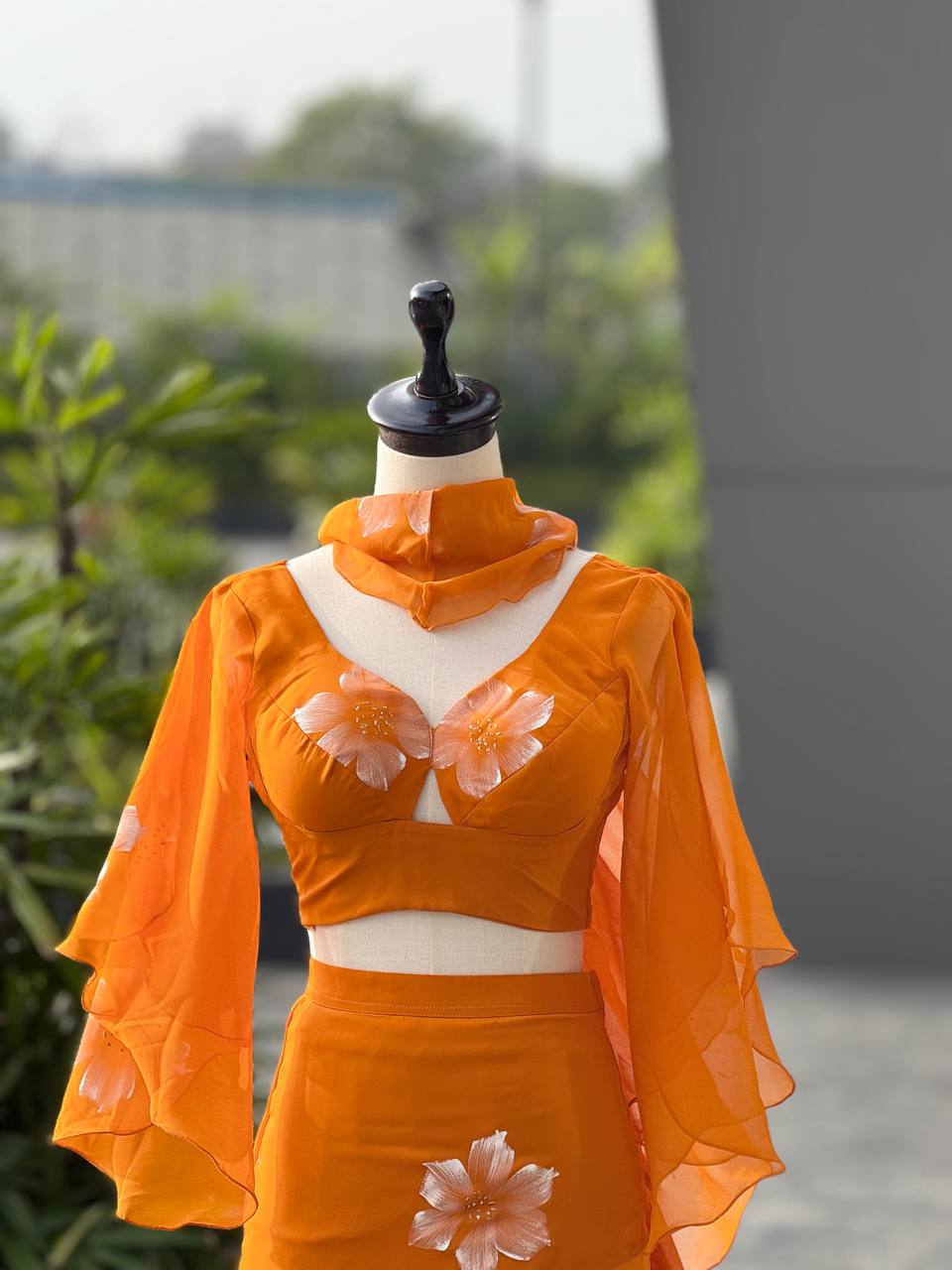 lehenga - Georgette Handprint work fish cut lehenga with adjustable waist elastic and dori 🌸