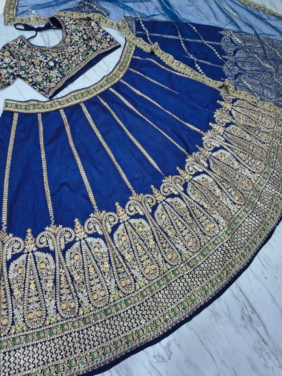 Lehenga : Premium Heavy Slub Silk Lehenga Embellished With Beautiful Thread Embroidery Work , Dori Work And With Heavy Sequins Work With Heavy Cancan And Canvas With Double Inner Covering With 3.5 Mtr Flair( Semi Stitched. )