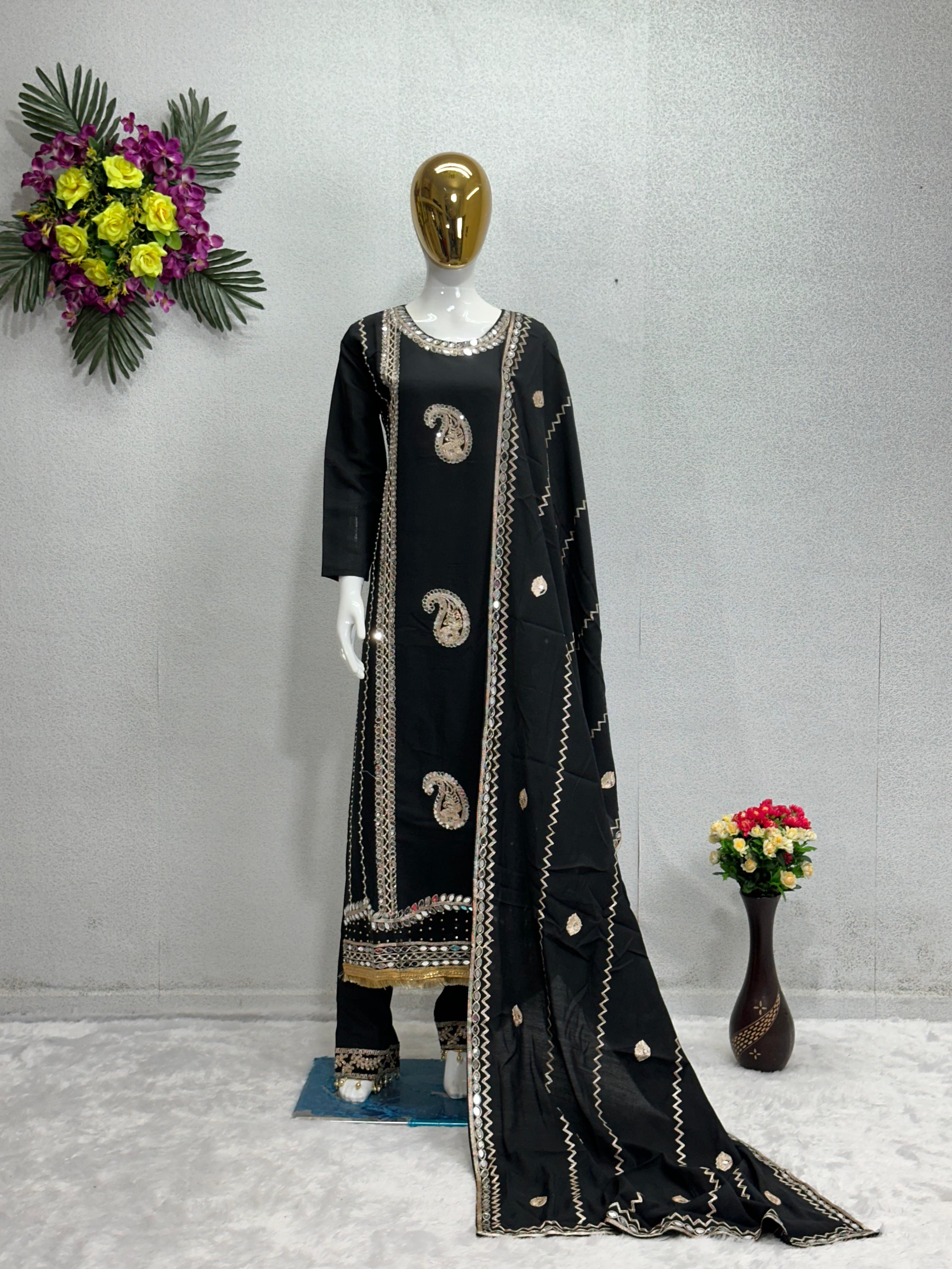 | WORK | EMBROIDERED WORK WITH LESS AND MIRROR WORK |