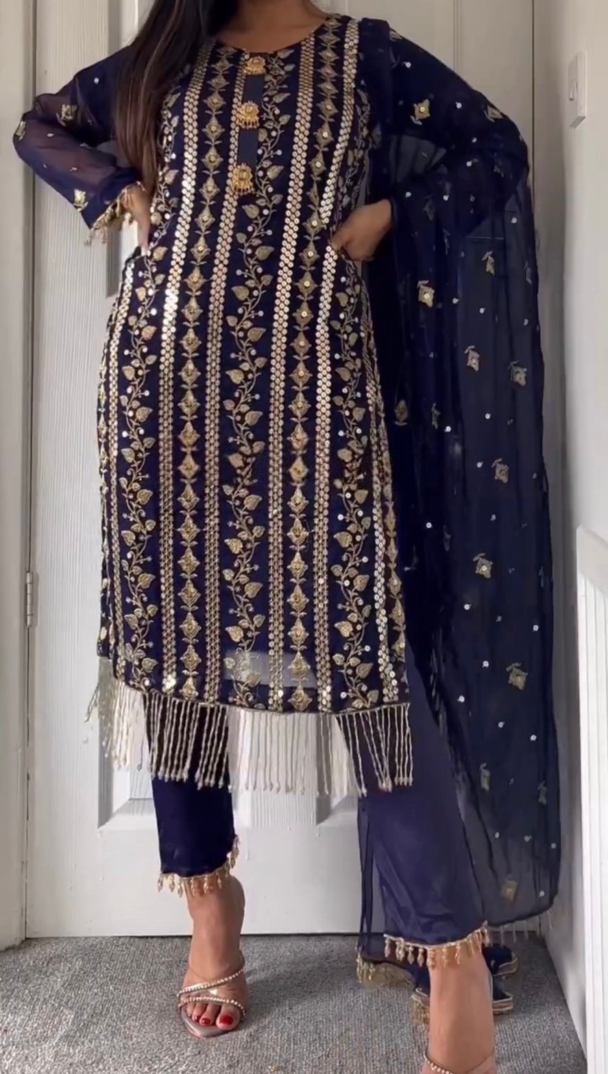 | Work | Heavy Embroidery 9mm Sequence Work With Moti Latkan Less . *(Fully Sleeve’s)* |