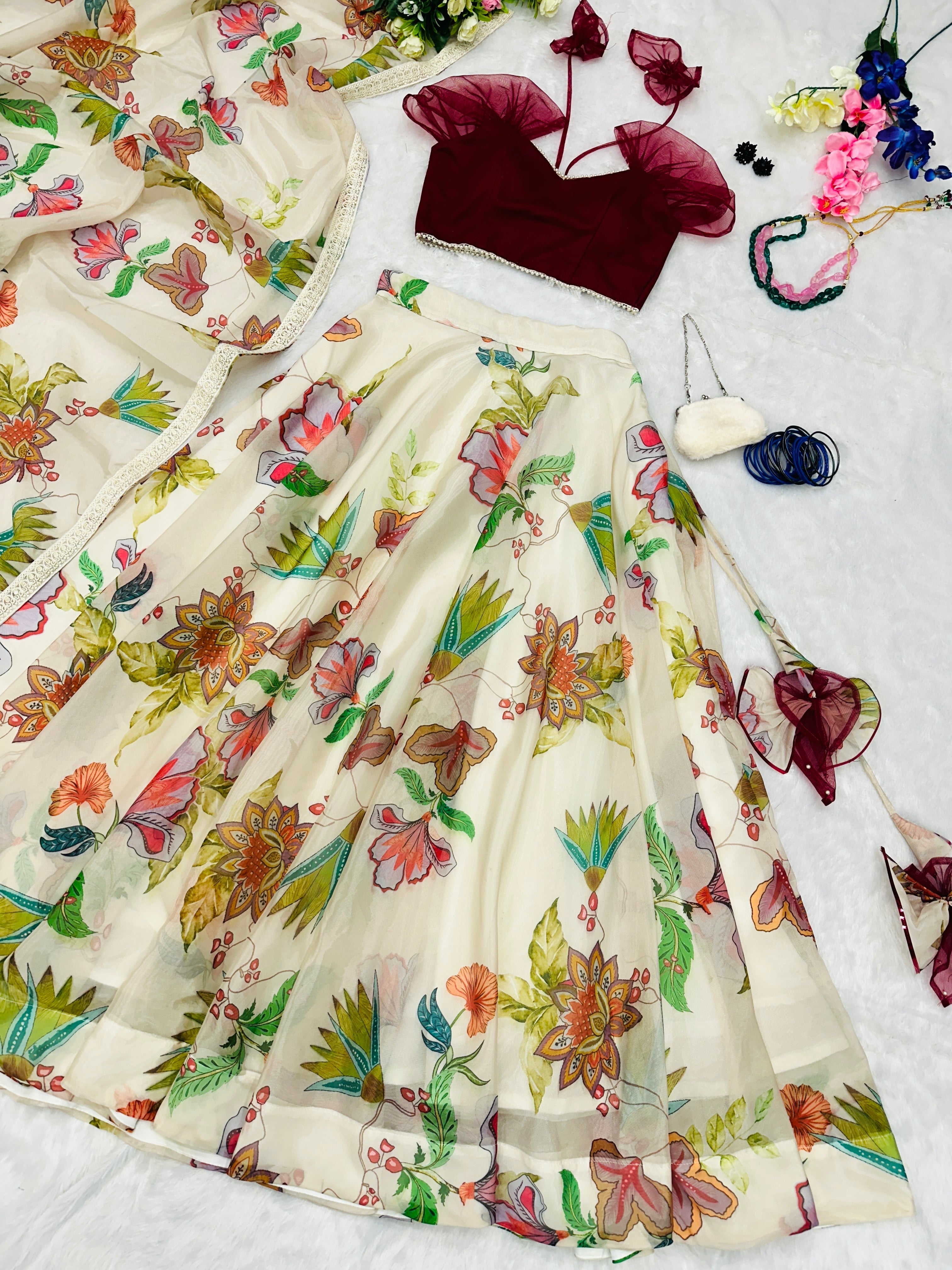 | Work | digital printed lehenga |