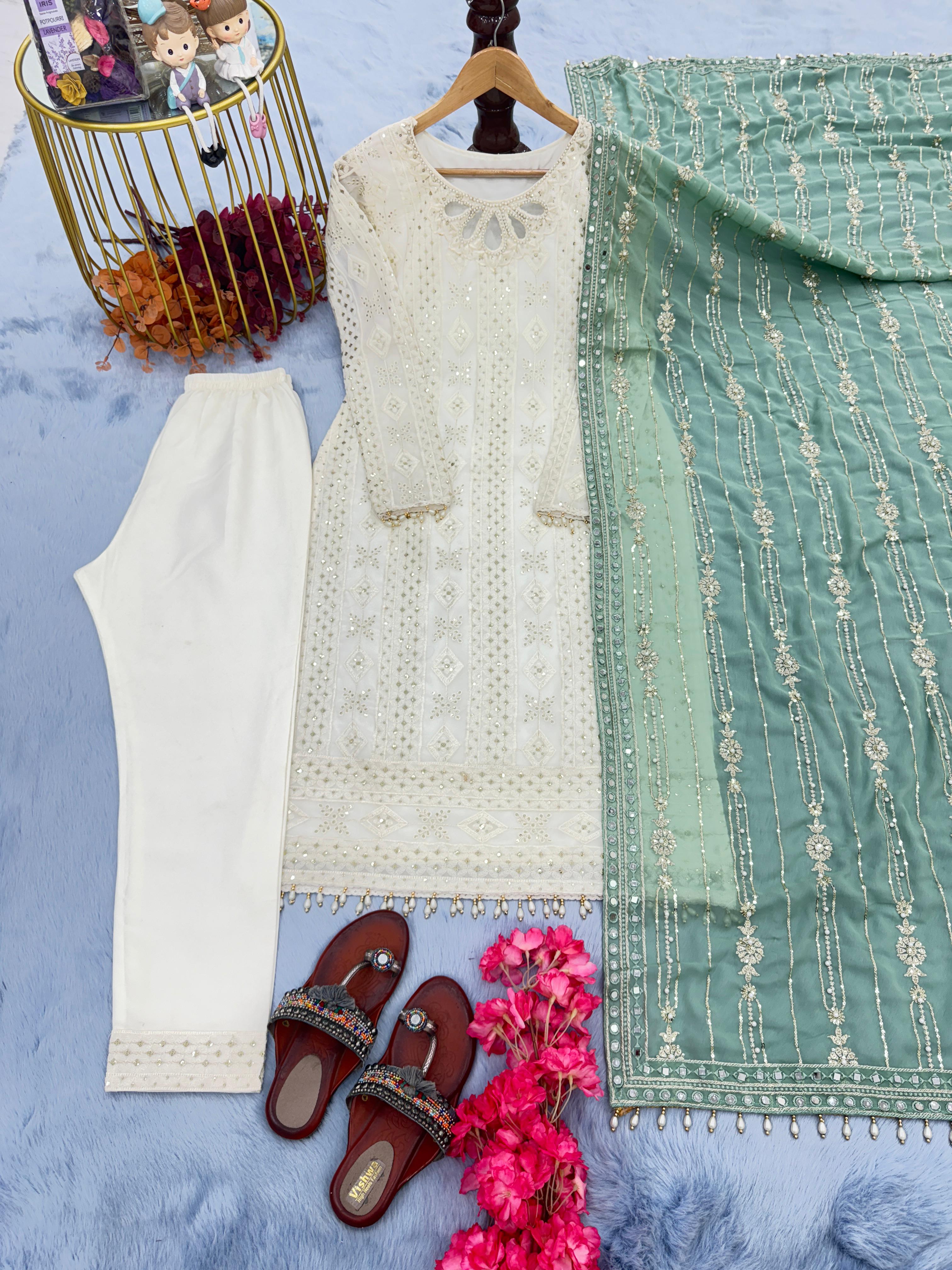 Work Embroidery 3 Mm Sequence Work With Rivet Moti Work With Full Sleeve With Fancy Latkan