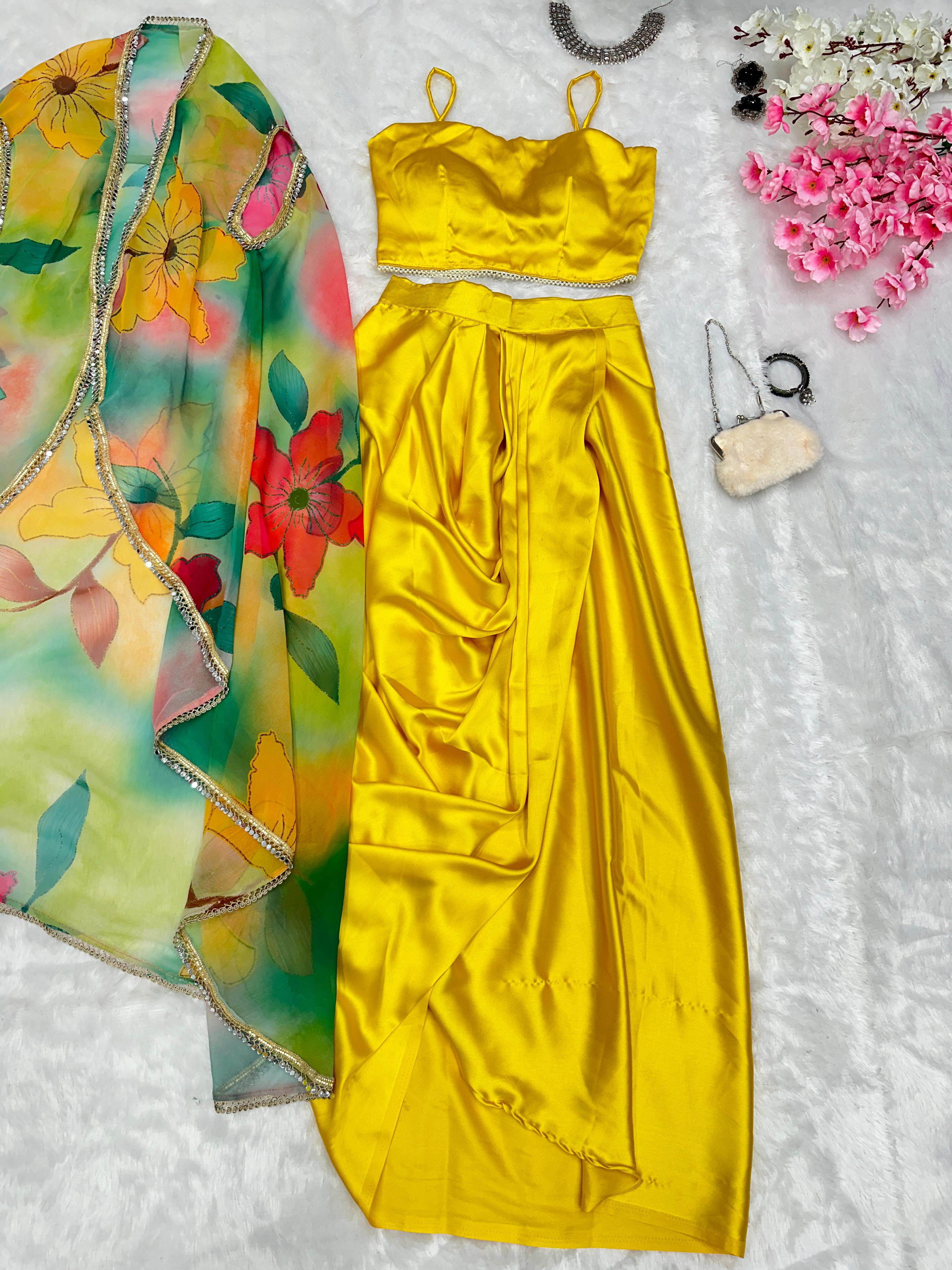 Category Designer Lehenga, Dhoti Suit, Haldi Collection, New Arrival, Top & Shrug Lehenga