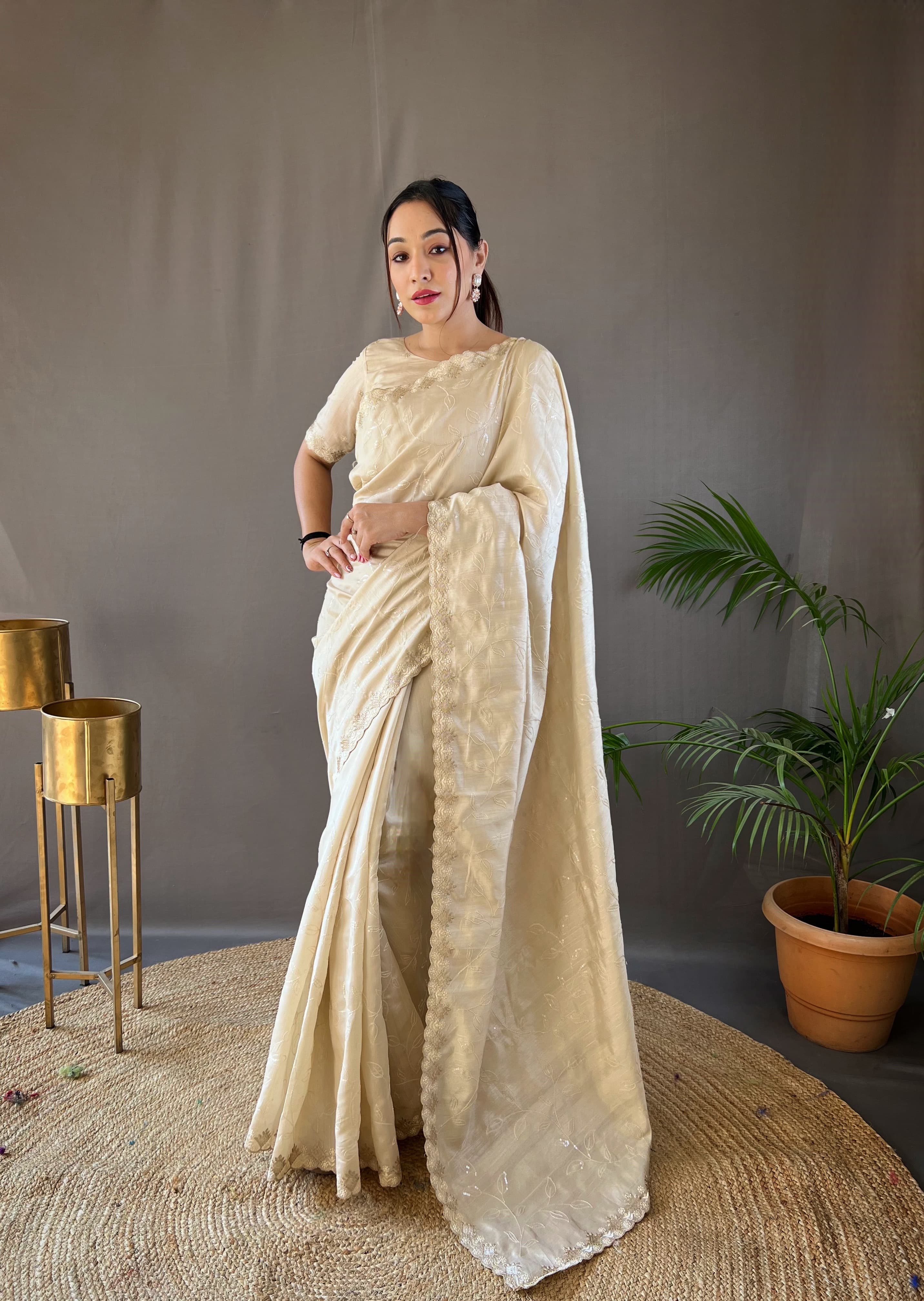 | Work | : All over jal work of water sequence with cutwork fancy border and fancy embroidery running blouse piece. |