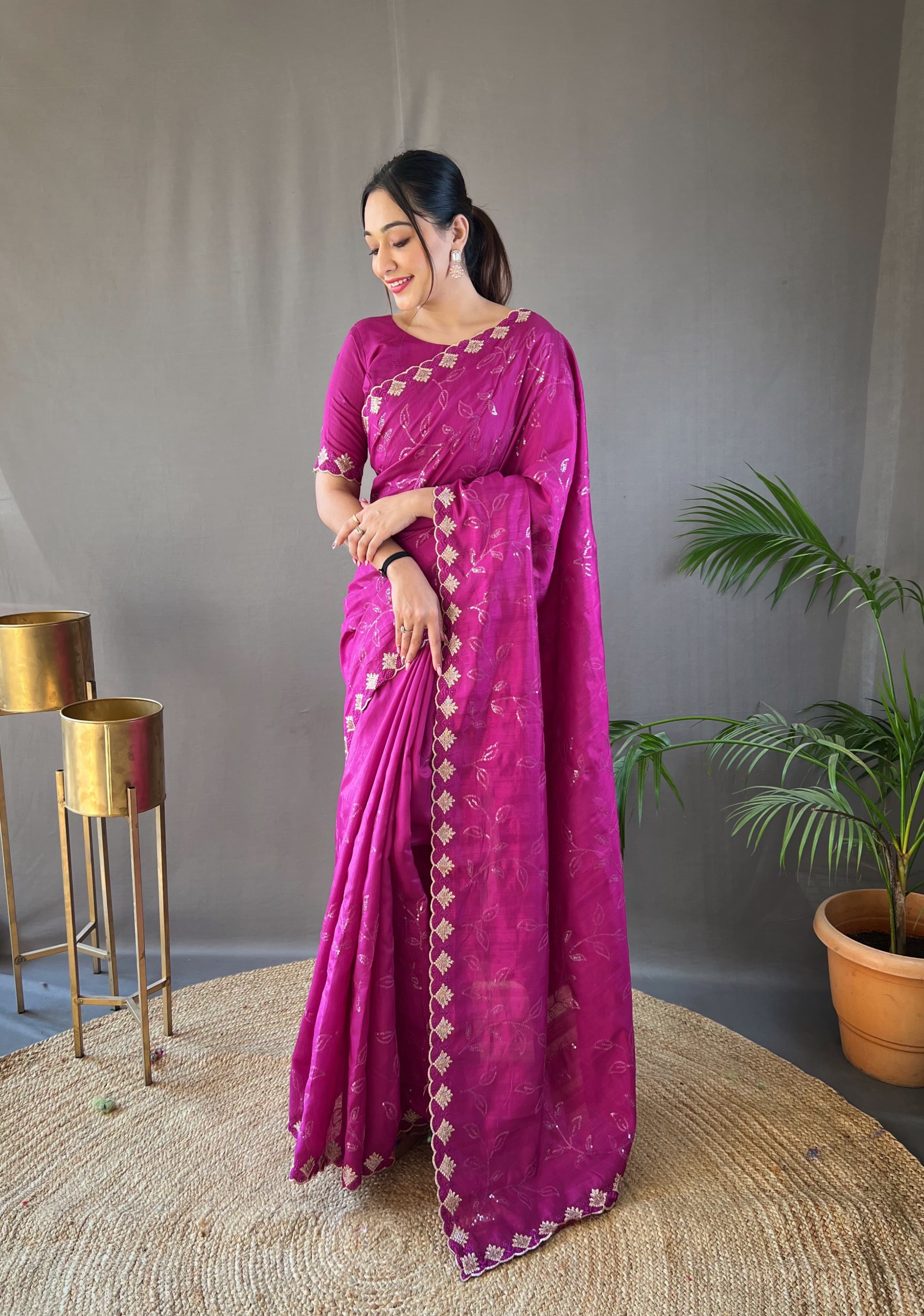 | Work | : All over jal work of water sequence with cutwork fancy border and fancy embroidery running blouse piece. |