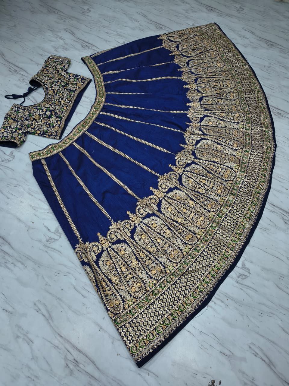 Lehenga : Premium Heavy Slub Silk Lehenga Embellished With Beautiful Thread Embroidery Work , Dori Work And With Heavy Sequins Work With Heavy Cancan And Canvas With Double Inner Covering With 3.5 Mtr Flair( Semi Stitched. )