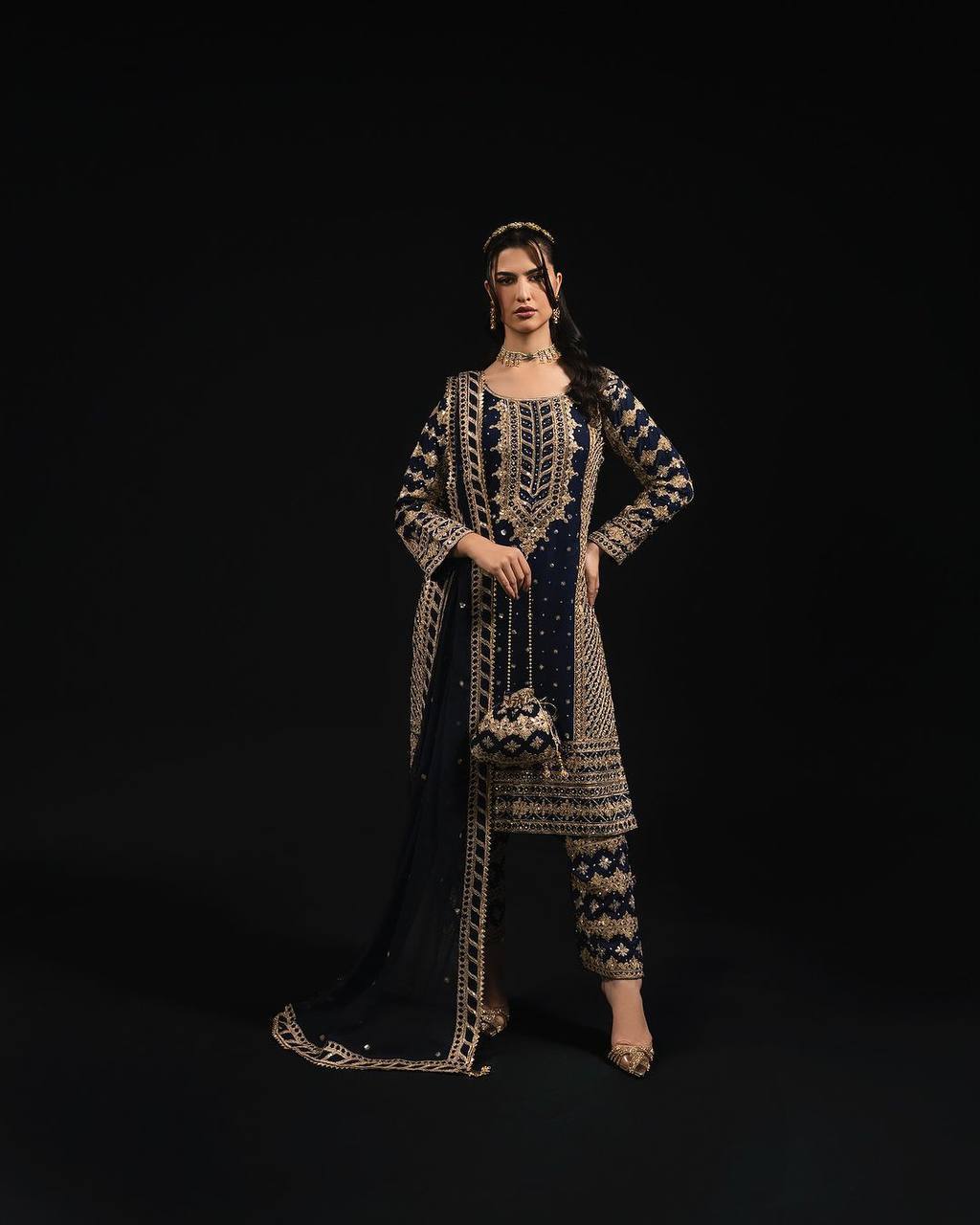 Trendy Blue Georgette Thread Work Palazzo Suit