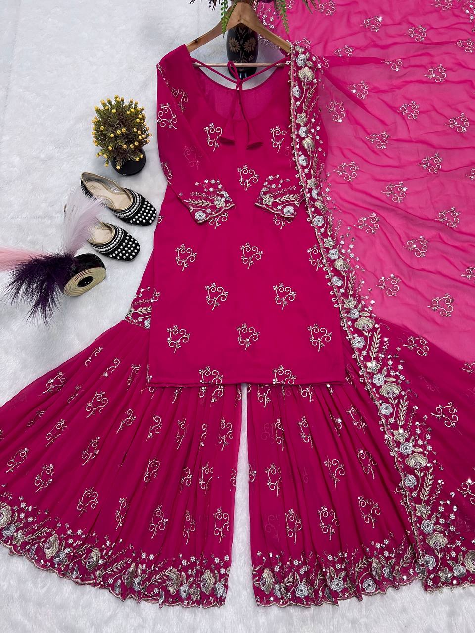 Top Fabric :- Heavy Faux Georgette With Heavy Embroidery Sequence Work With Full Sleeve With Latkan Dori.